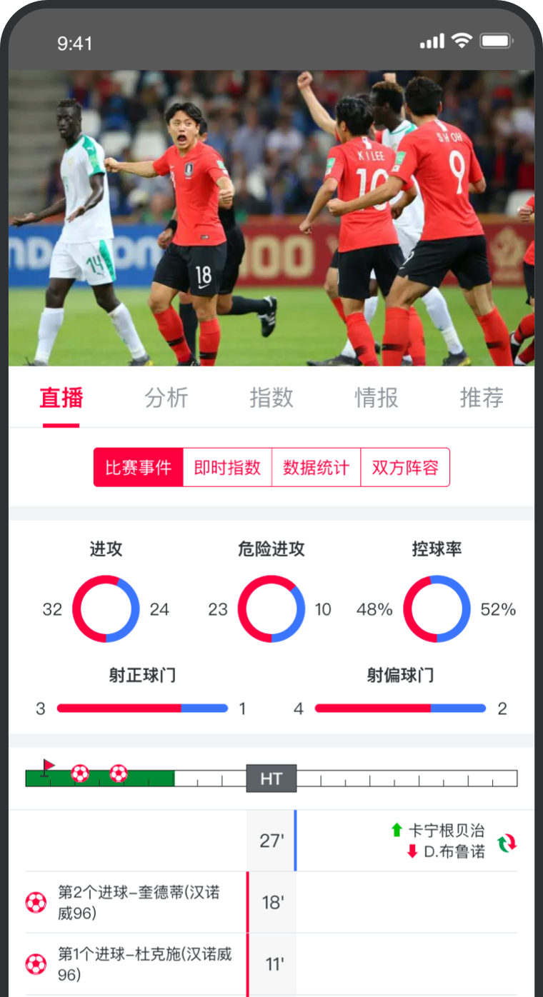 提供专业的体育赛事比分服务,与赛场同步,更有详细的数据统计、阵容情报等等